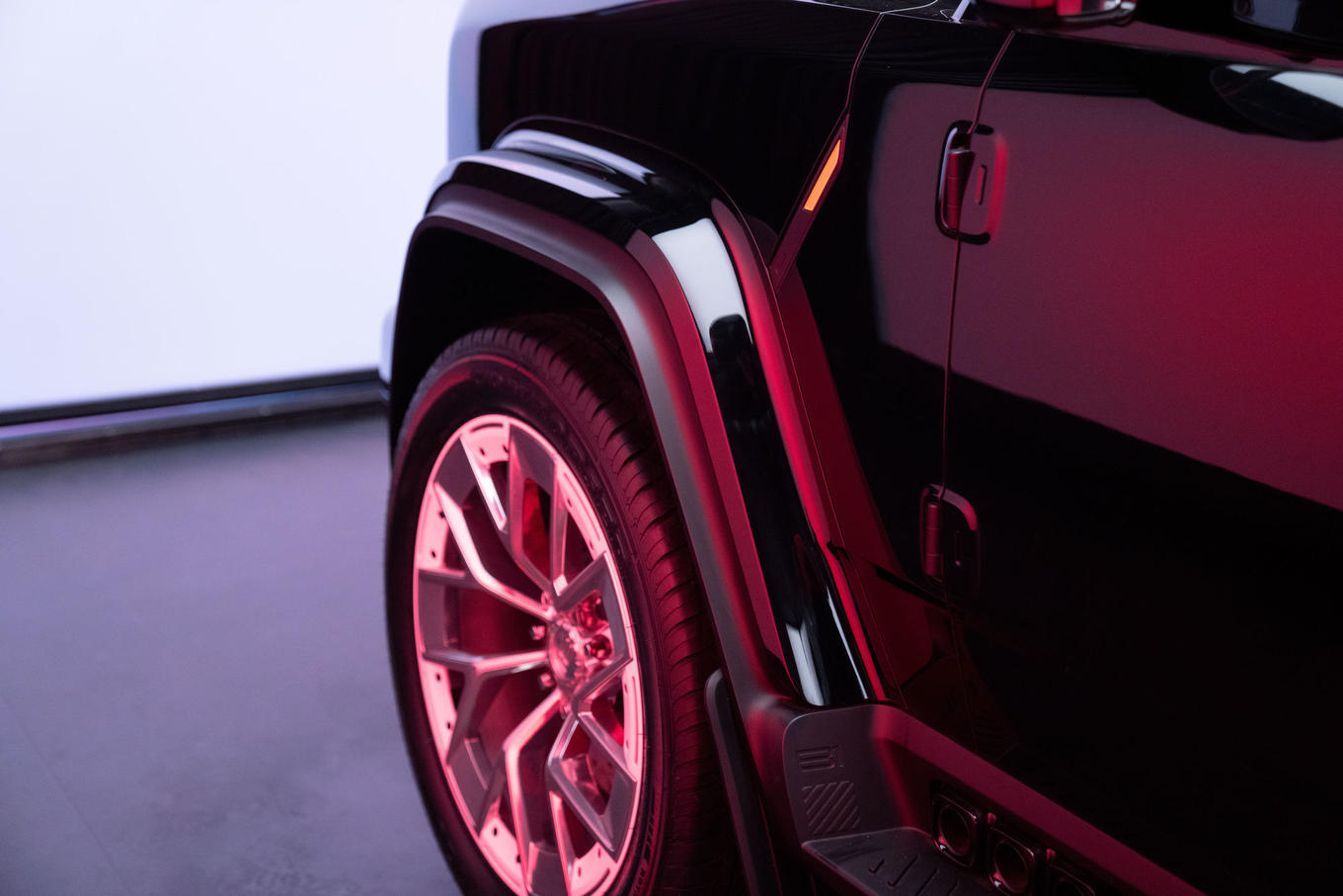 同时,侧窗玻璃采用前后齐平处理,在保持经典轮廓的同时兼顾风阻与视野表现;泄压阀位置的重新规划,在电池安全与空间利用间寻求更合理的平衡;传统外挂备胎方案升级为可储物“小书包”,继承概念车广受好评的战术储备设计,提升了实用功能。