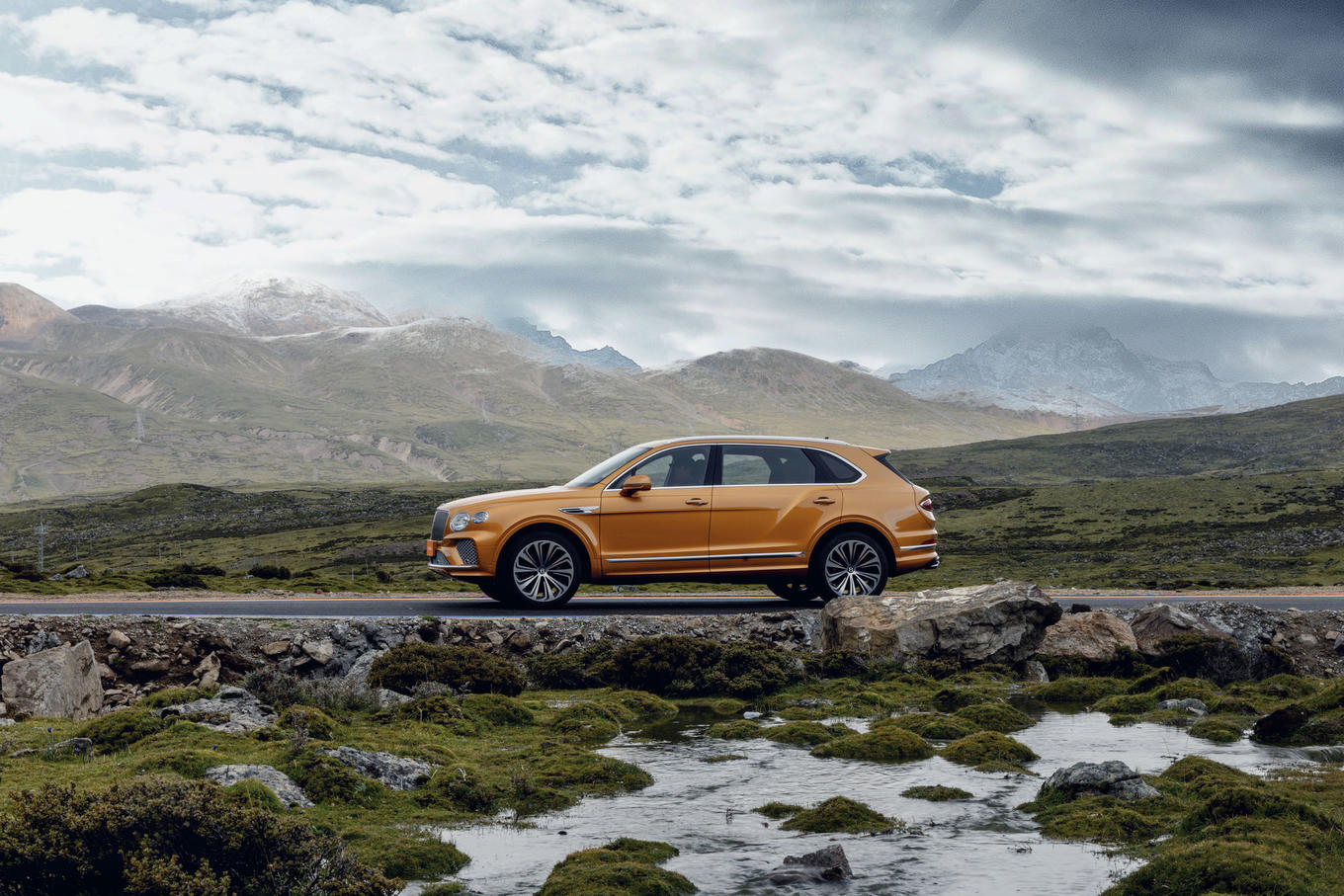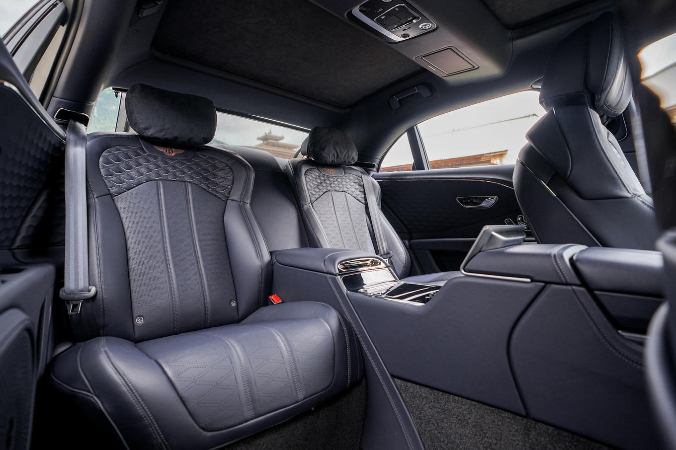 新的宾利“悬浮式菱形”进气格栅威严而新潮,闪闪发光的各种镀铬饰件在高原阳光的照耀下熠熠生辉。如果愿意,宾利客户还可以选择定制化炫黑套件,所有的外观镀铬饰件和后视镜盖将更换为亮黑色。