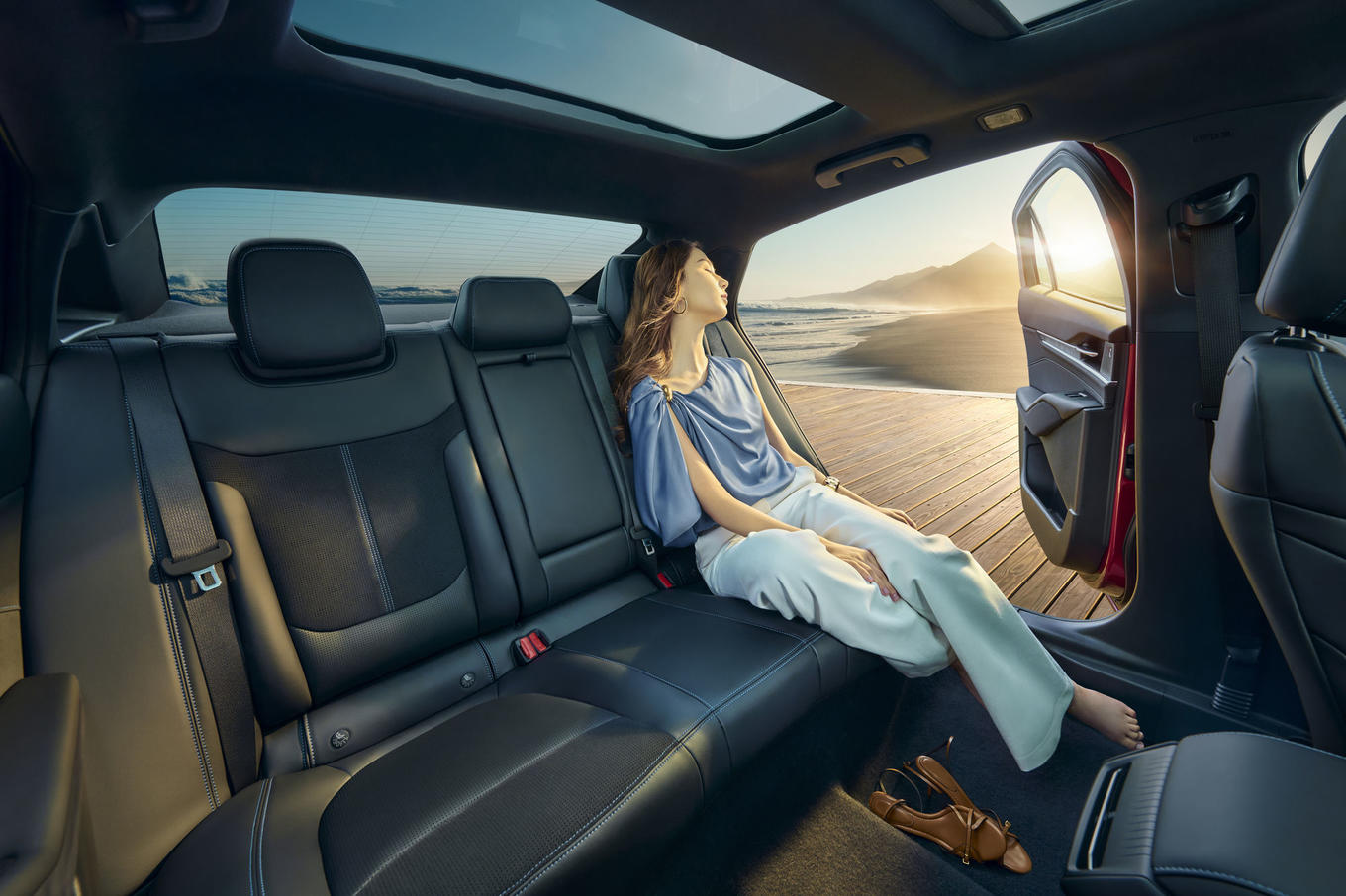 新蒙迪欧车长接近5米,轴距为2945毫米,二排腿部空间接近1米。后排座椅支持多挡位调节与放倒,后备厢容积可从520升拓展至1550升。其他舒适性配置包括0.94平方米全景天窗、丹麦B&O音响及吸入式座椅通风加热系统等。